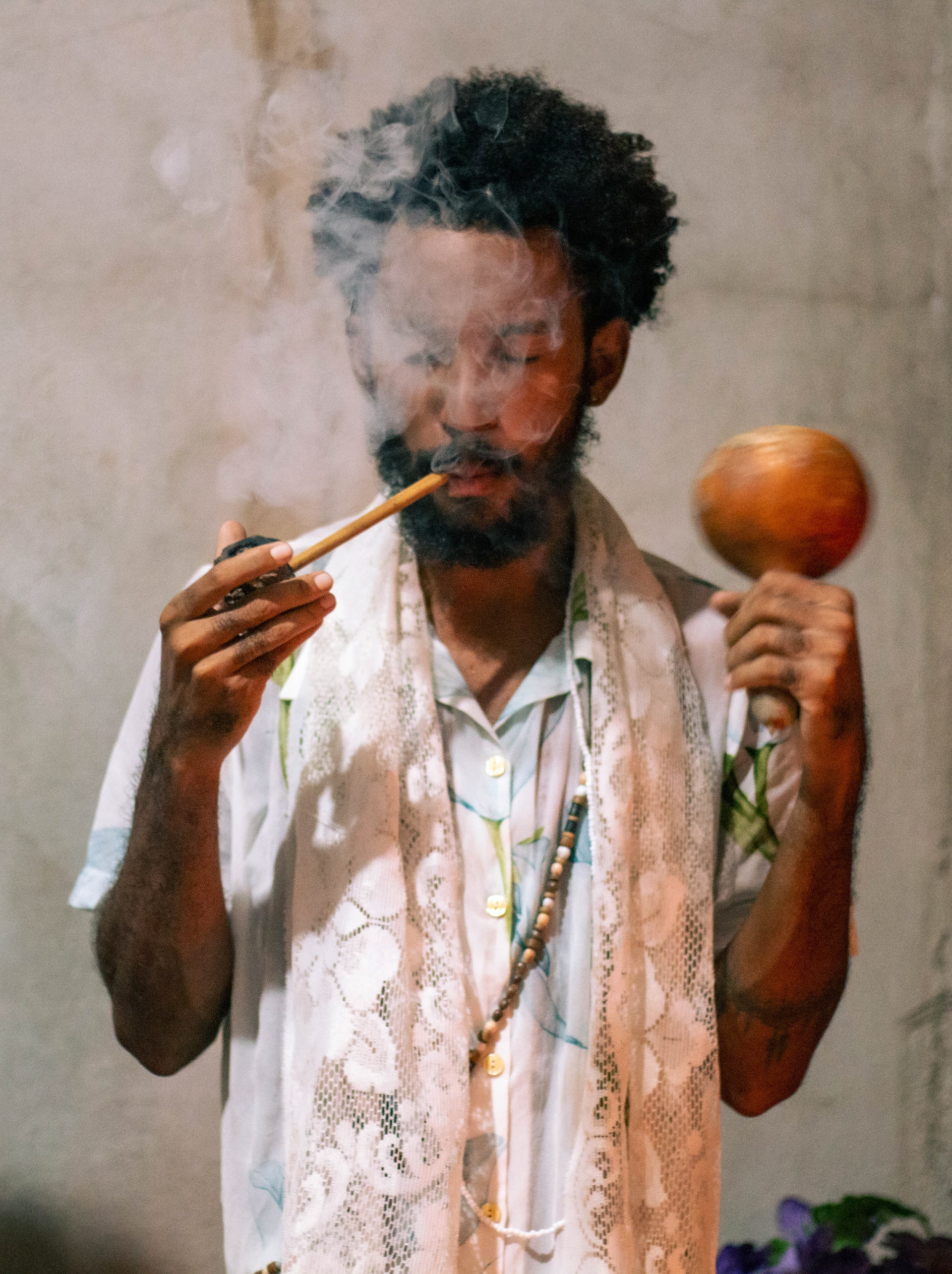 A pesquisa se desdobra em afrografias das memórias culturais negras em Fortaleza, que busca investigar as confluências entre giras de religiões afro-indígenas-brasileiras e festas negras-periféricas, tendo como pontos de partida a Festa Crioula e o Terreiro Zé Pilintra das Almas.